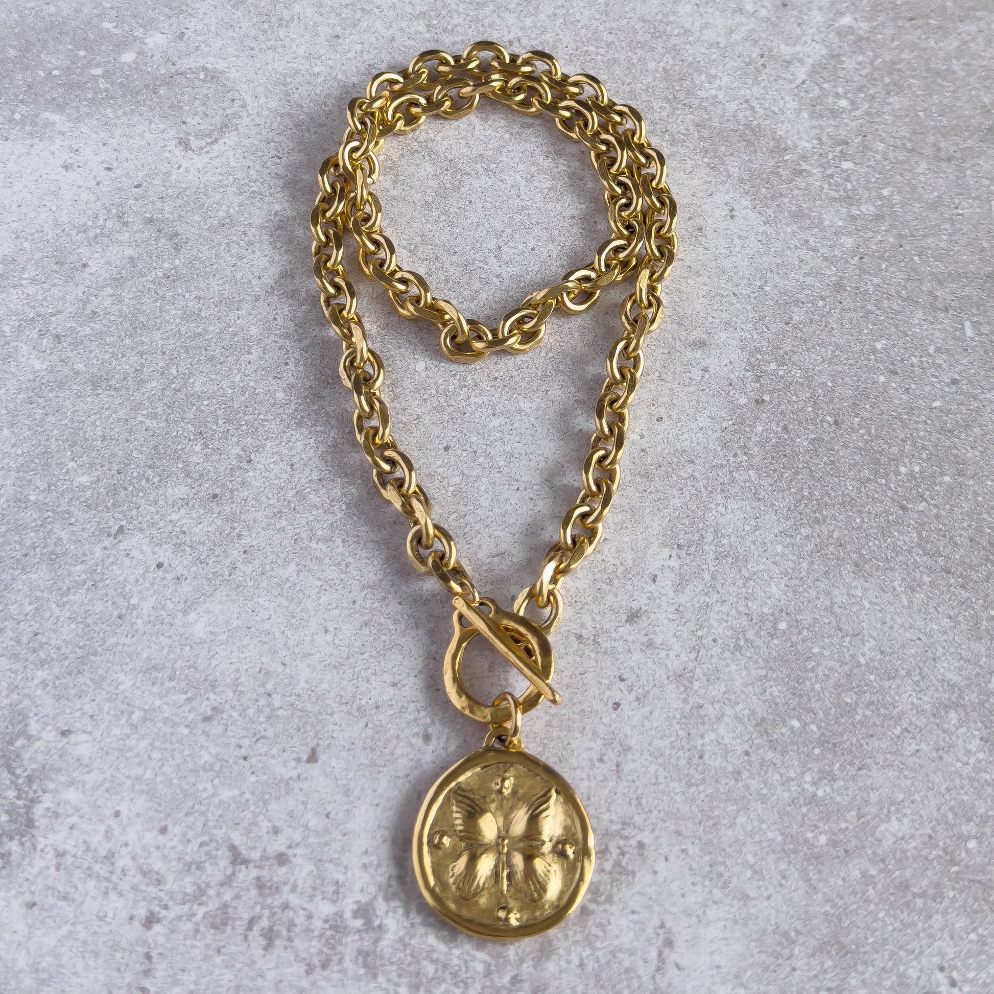 – Hammered toggle clasp and hammered cable chain